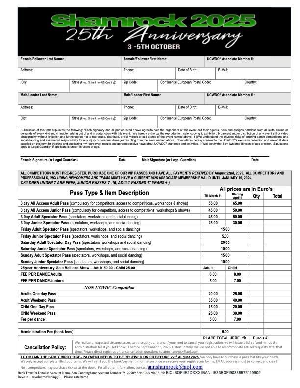 Please fill in the pdf - form and send them to our Email Address: annshamrock@aol.com